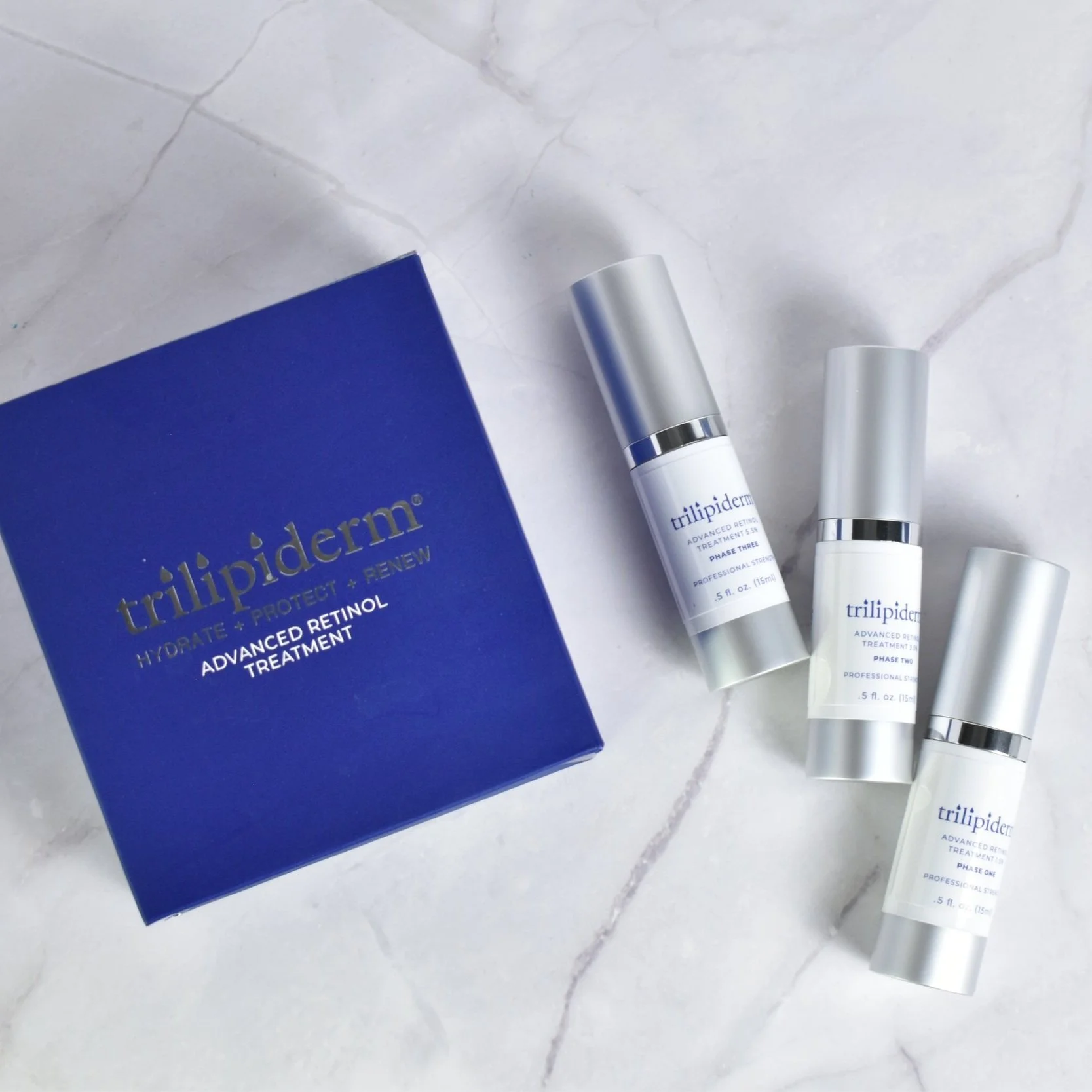 This was my first product design project at Trilipiderm. I designed the box and all three labels for the different strengths of retinol included in the system.